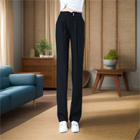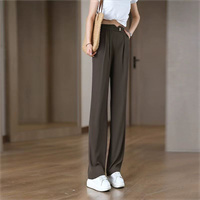 2025春季新款百搭冰絲涼涼休閒褲女高腰顯瘦顯高垂感窄版直筒褲子