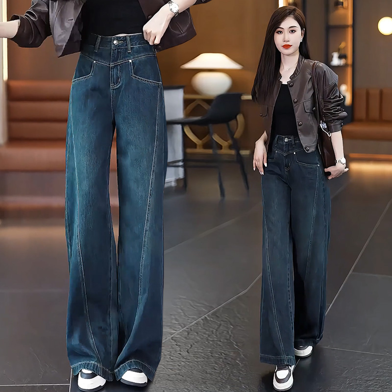 想自在有范兒 高腰牛仔褲掐腰線 水洗料軟耐穿 搭 T 恤襯衫 大碼也顯時尚